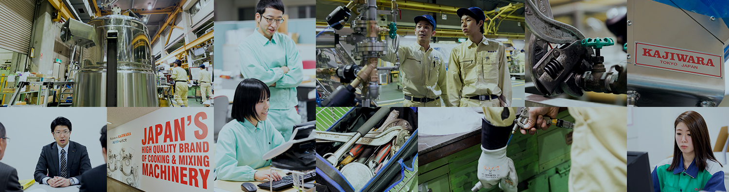 カジワラという会社は、食品製造の調理工程を機械によって自動化し、味づくりをお手伝いする機械メーカーです。その役割は、より美味しく・より効率的に・より衛生的でより安全な設備の開発・製造・販売にあります。