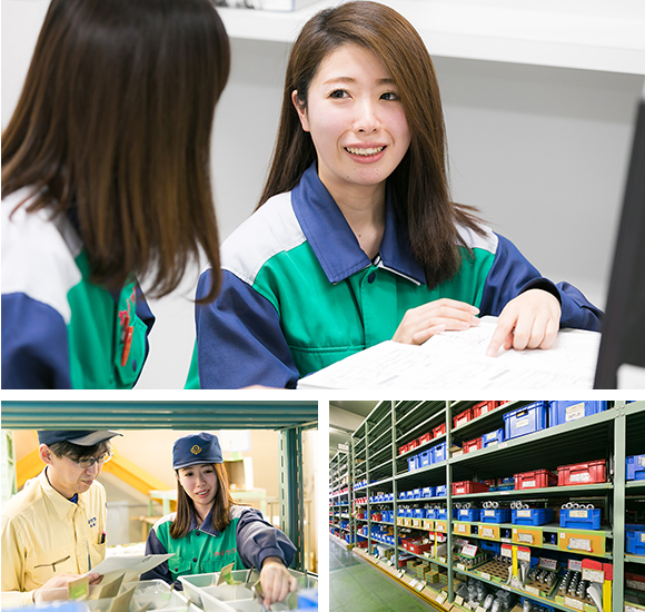 資材調達の事務としてキャリアをスタートさせ、現在は発注から検品まで幅広い仕事を任されるようになっている。