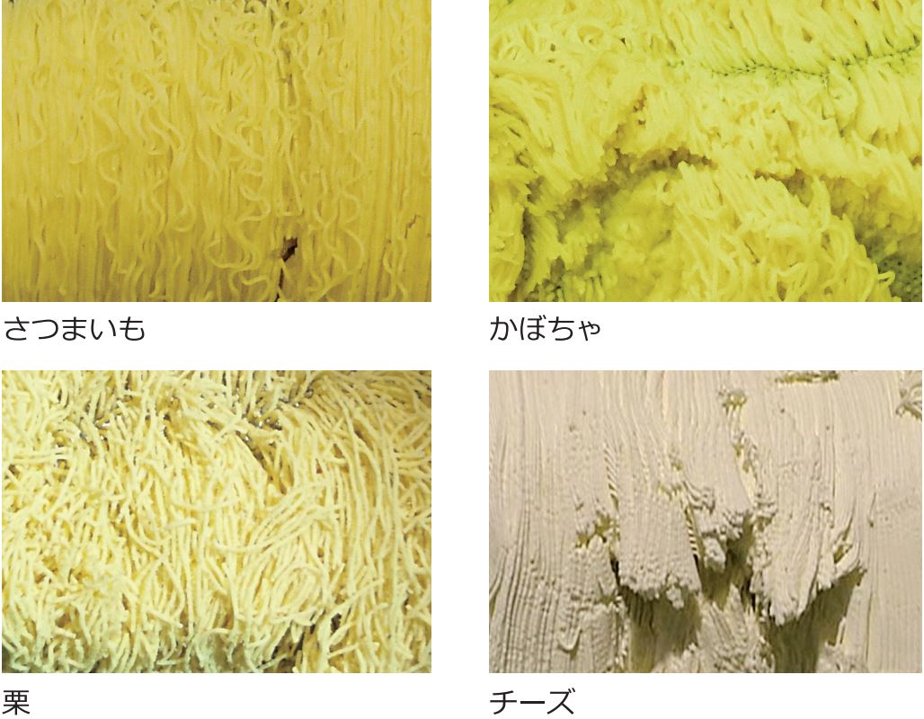 ジャム(ボイルした果実のパルプ化・濾過)、きんとん(甘藷のスジ除去)、栗(うらごし・渋皮除去)、各種ペースト(ダマ除去)、明太子(バラコ)・イカのわた・さつまいも・かぼちゃ・おから・卵黄・ルー・豆腐・酒粕・味噌・冷菓用あん・はんぺんなど魚肉などの各種うらごし、そぼろ製造、生地のフキリ、骨・皮・スジ・ウロコの分離・除去など